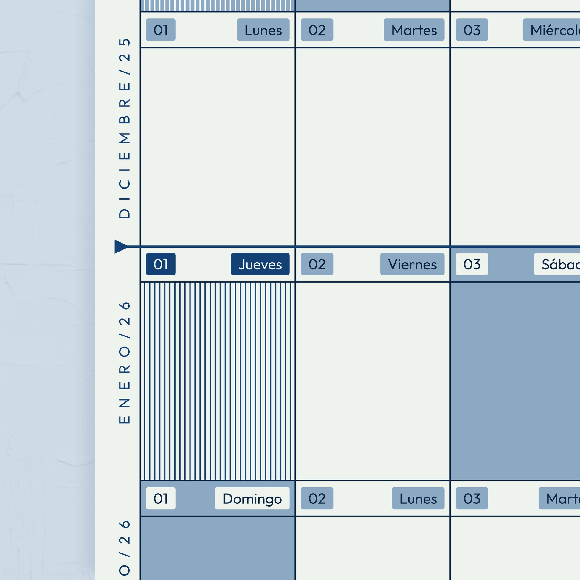 Visual, práctico, y gigante. Cada mes a la vista, para planificar con intención, tomar decisiones a tiempo, y ver el año como un todo.