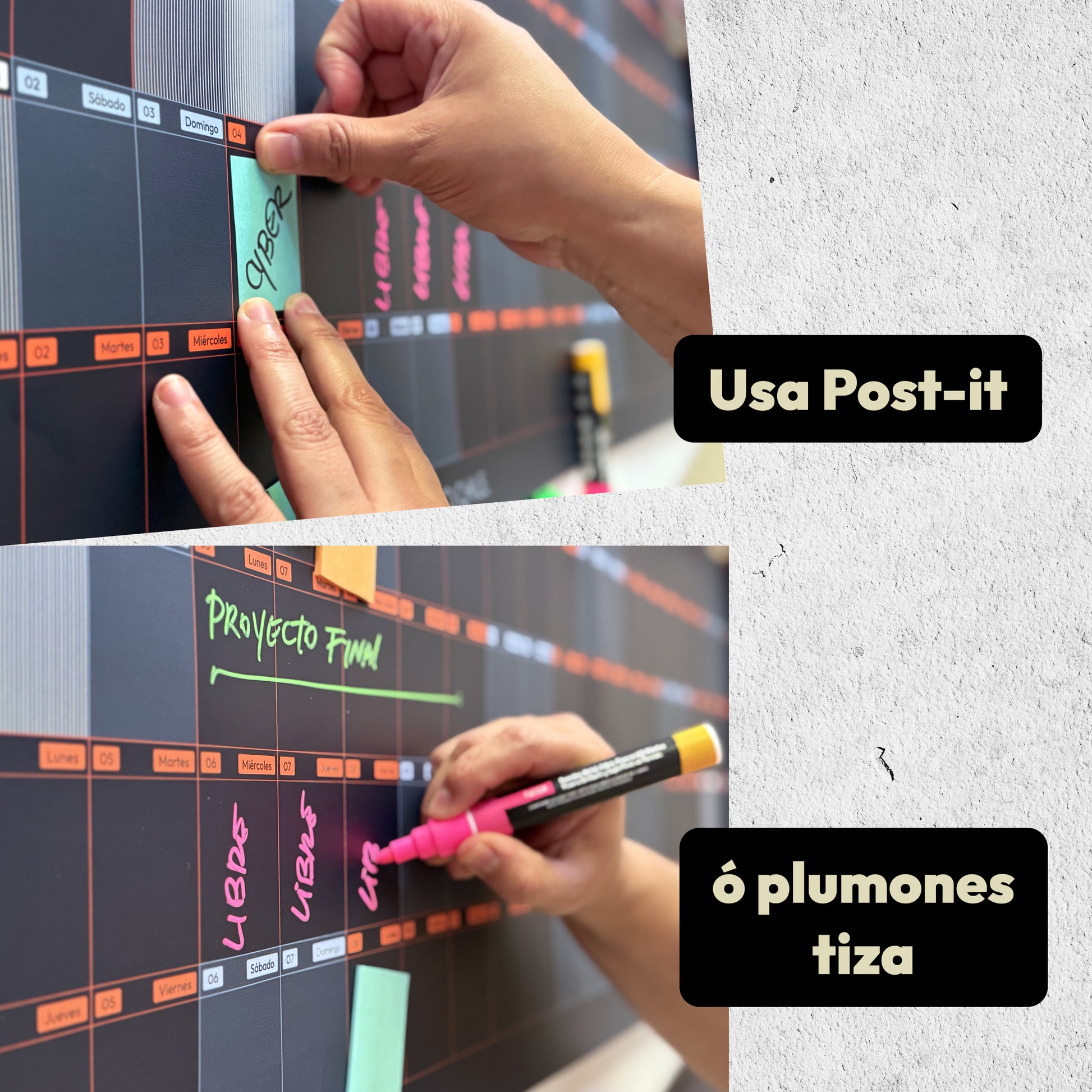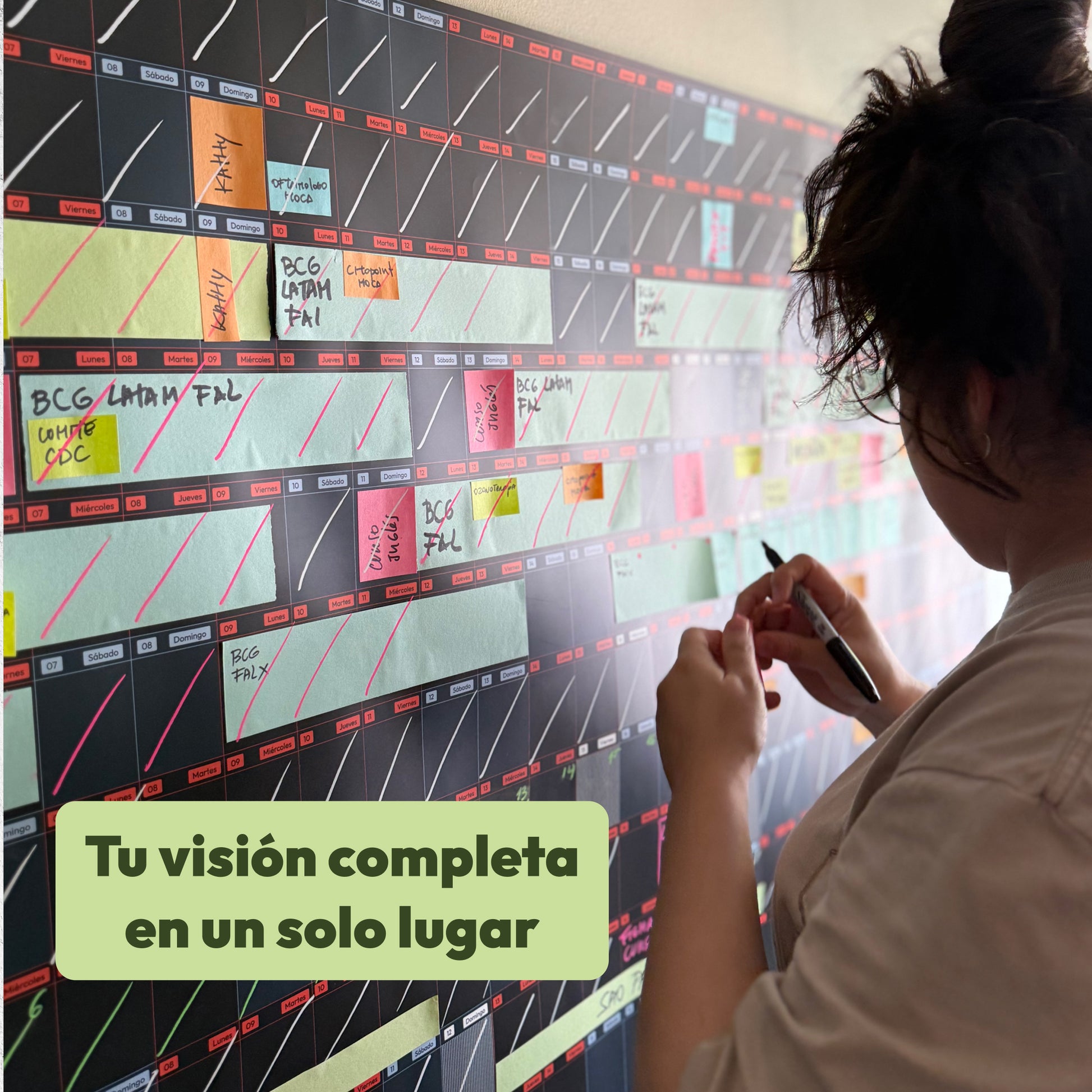 Te permite ver tu año completo desplegado frente a tí, recordándote que el tiempo es finito y ayudándote a enfocar tu visión a largo plazo para planificar tus objetivos y metas anuales. Este calendario te ayudará a gestionar tu tiempo, sacando el máximo provecho con una visión global de tu futuro.