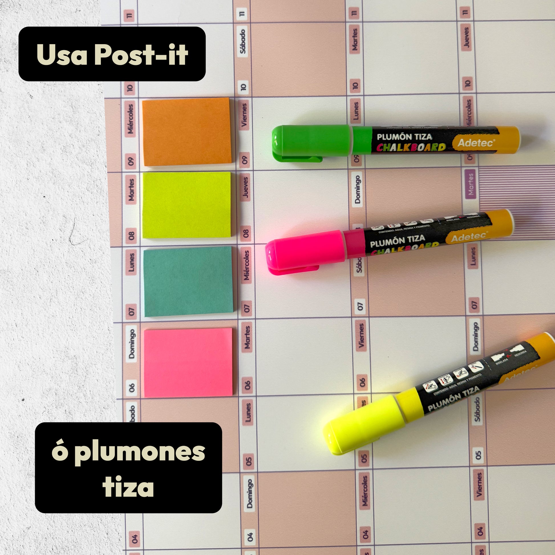Set de Plumones Tiza 365co (blanco, verde, rosado, amarillo).